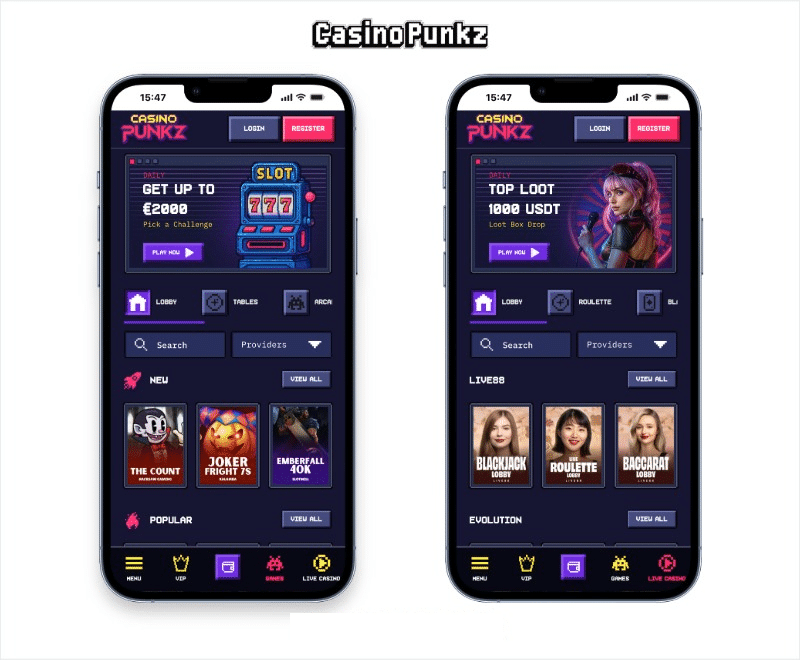 Punkz casino offers a lot to high rollers in the crypto space, with generous ongoing rakeback rewards and elevated betting limits across slots, tables, and live dealer games like Evolution Blackjack. The punk-themed, arcade-style design delivers a fun experience with fast crypto transactions and minimal KYC requirements.